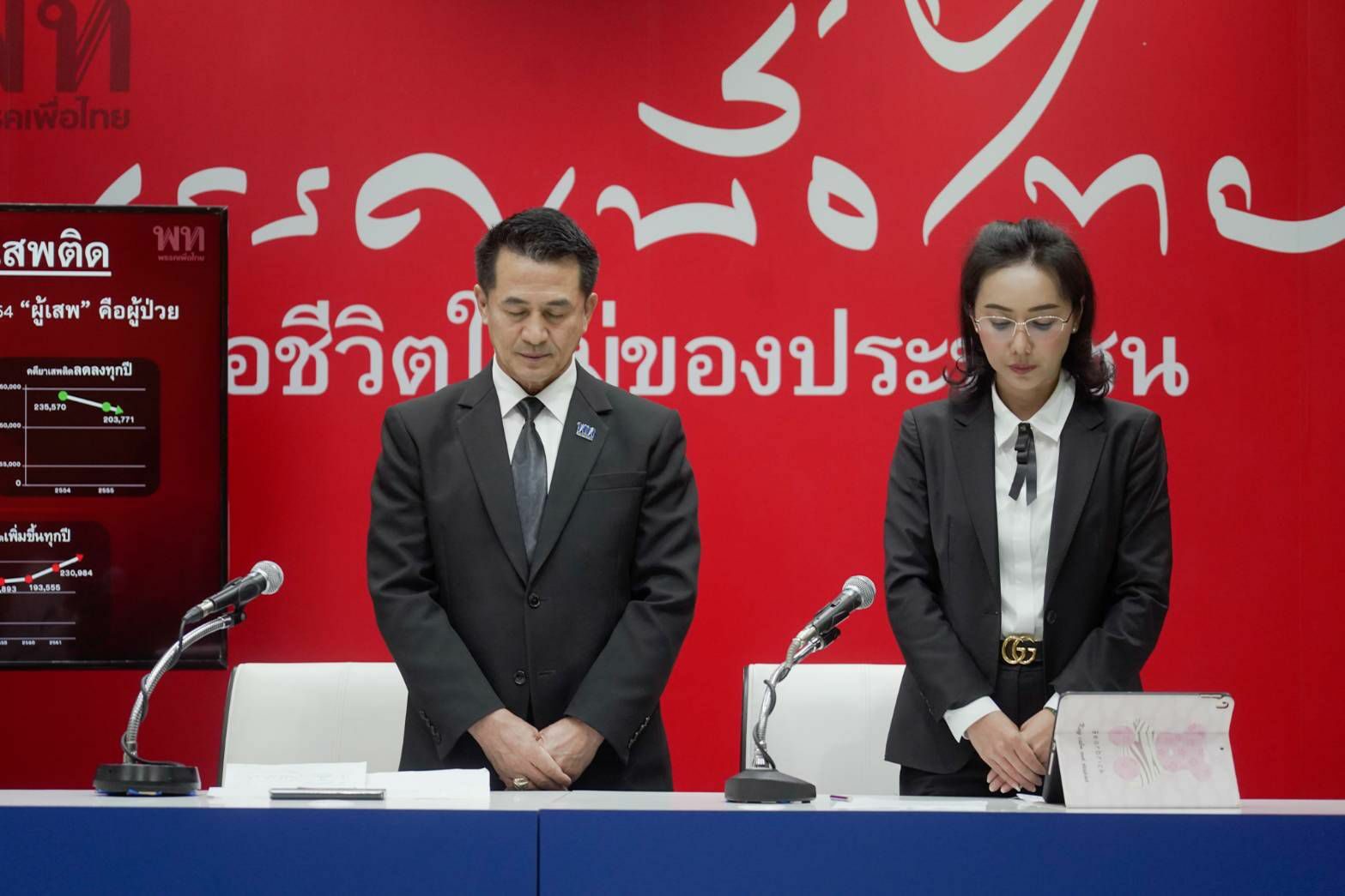 เมื่อเวลา 11.00 น. วันที่ 7 ตุลาคม ที่พรรคเพื่อไทย (พท.) นพ.ชลน่าน ศรีแก้ว หัวหน้าพรรคพท. และ น.ส.ลิณธิภรณ์ วริณวัชรโรจน์ รองเลขาธิการพรรค ร่วมแถลงเหตุกราดยิงที่ศูนย์เด็กเล็กฯ จ.หนองบัวลำภู โดยก่อนแถลงทั้ง นพ.ชลน่านและ น.ส.ลินธิภรณ์ได้ร่วมยืนไว้อาลัยให้กับผู้เสียชีวิตเป็นเวลา 1 นาที