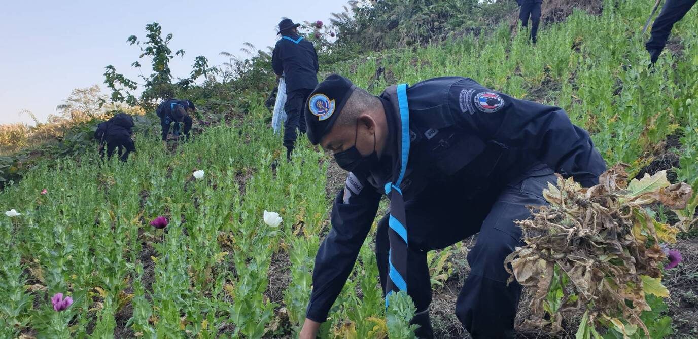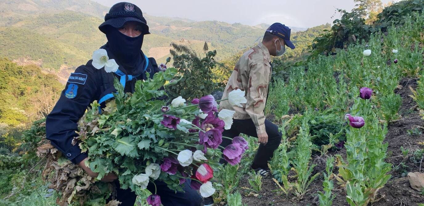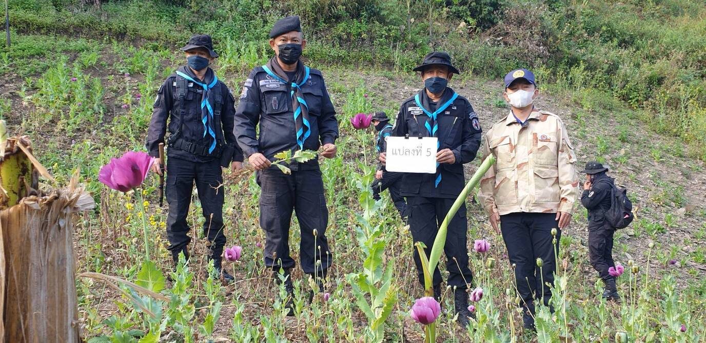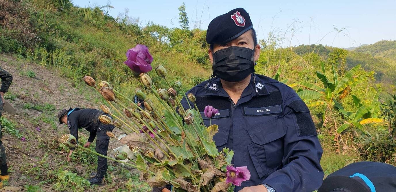 น่าน ผบ.ฉก.ทพ.32 กองกำลังผาเมืองสนธิกำลังเจ้าหน้าที่ทหารตำรวจและฝ่ายปกครองทำลายไร่ฝิ่น 4.62ไร่ ที่อำเภอทุ่งช้าง จังหวัดน่าน