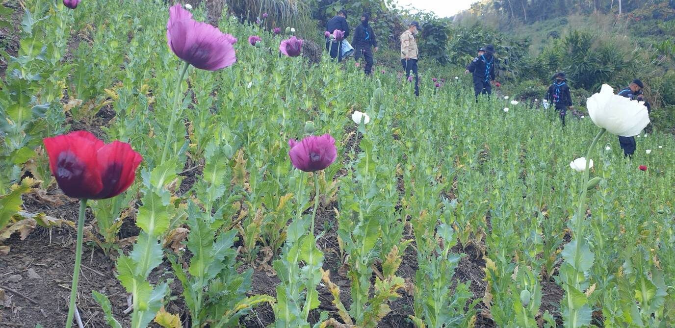 แปลงที่ 7 พิกัด QB 08190 46206พื้นที่ 0.52ไร่ ความหนาแน่น ประมาณ 50% ความสูงของต้นฝิ่นประมาณ 20 ซม. แปลงที่ 8 พิกัด QB 10752 46720 พื้นที่ 0.21ไร่ ความหนาแน่น ประมาณ 50% ความสูงของต้นฝิ่นประมาณ 10 ซม. แปลงที่ 9 พิกัด QB 10782 47065 พื้นที่ 0.37ไร่ ความหนาแน่น ประมาณ 50% ความสูงของต้นฝิ่นประมาณ 15 ซม. แปลงที่ 10 พิกัด QB 01273 47415 พื้นที่ 0.30 ไร่ ความหนาแน่น ประมาณ 50% ความสูงของต้นฝิ่นประมาณ 20 ซม. แปลงที่ 11 พิกัด QB 013692 47165 พื้นที่ 0.56ไร่ ความหนาแน่น ประมาณ 50% ความสูงของต้นฝิ่นประมาณ 25 ซม.