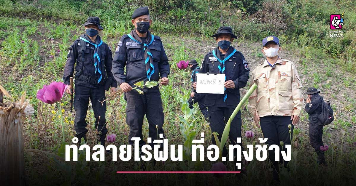 น่าน ผบ.ฉก.ทพ.32 กองกำลังผาเมืองสนธิกำลังเจ้าหน้าที่ทหารตำรวจและฝ่ายปกครองทำลายไร่ฝิ่น 4.62ไร่ ที่อำเภอทุ่งช้าง จังหวัดน่าน