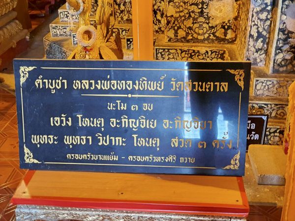 ข้างต้นนี้เป็นคำบูชา “หลวงพ่อทองทิพย์” วัดสวนตาล เชื่อศรัทธากันว่าหากได้สักการะขอพรแล้ว ชีวิตจักโชคดี สมหวังดังใจปรารถนา
