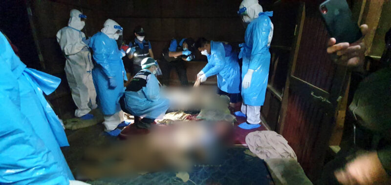 เมื่อวันที่ 26 พฤศจิกายน 2564 เวลา 22.43 น. ร.ต.ท.ณัฐนันท์ พูลเพิ่ม พงส.สภ.เมืองน่าน ได้รับแจ้งจากศูนย์วิทยุ 191 ว่า บ้านสมุนใหม่ หมู่ 16 ต.สะเนียน อเมืองน่าน ซึ่งเป็นหมู่บ้านชนเผ่า จึงรายงานให้ พ.ต.อ.ชาตรี หทยวัฒน์ ผกก.สภ.เมืองน่าน ,พ.ต.ท.จักรพงษ์ วงศ์ไชย รอง ผกก.สส. ,พ.ต.ท.ทนงศักดิ์ พิชญ์วิชชาธรรม รอง ผกก. (สอบสวน) ทราบ พร้อมประสาน พ.ต.ท. หญิงวัชรพรรณ วะรินทร์ นักวิทยาศาสตร์ (สบ.3) พิสูจน์หลักฐาน จ.น่าน นพ.กรกฤช จารุไพบูลย์ แพทย์นิติเวช รพ.น่าน และจนท.ตร.ชุดสืบสวนจำนวนหนึ่ง รุดไปตรวจสอบในที่เกิดเหตุพบ จนท.ทีมกู้ชีพกู้ภัย สมาคมกู้ชีพ กู้ภัยนครน่านรวมใจ อยู่ในที่เกิดเหตุ ส่วนทีมกู้ชีพกู้ภัย อบต.สะเนียน ได้นำผู้ได้รับบาดเจ็บนำส่ง รพ.น่าน จำนวน 1 ราย