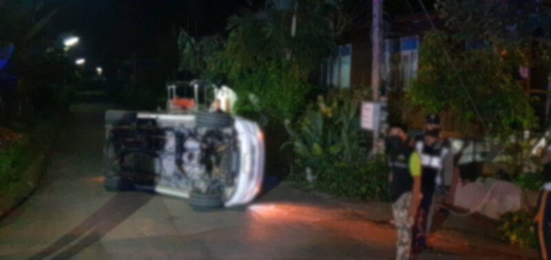 เมื่อวันที่ 12 พฤศจิกายน 2564 เวลา 00.30 น. ร.ต.อ.จิรัฏฐ์ จันสว่าง พงส.สภ.เมืองน่าน ได้รับแจ้งจากศูนย์วิทยุ 191 ตำรวจภูธรจังหวัดน่าน ว่ามีเหตุรถยนต์บรรทุกกะหล่ำปลีเสียหลักพลิกคว่ำถนนหน้าวัดพวงพยอม ตำบลในเวียงอำเภอเมืองน่าน จังหวัดน่าน พบเจ้าหน้าที่กู้ชีพกู้ภัยน่าน, ชุดอาสาชุดเหยี่ยวฟ้า, จนท.ทีมสมาคมกู้ชีพ กู้ภัยนครน่านรวมใจ, จนท.ตร.สายตรวจ, จนท.ประจำตู้ยานบ้านพญาวัด จำนวนหนึ่งกำลังให้การช่วยเหลือปฐมพยาบาลเบื้องต้นให้แก่