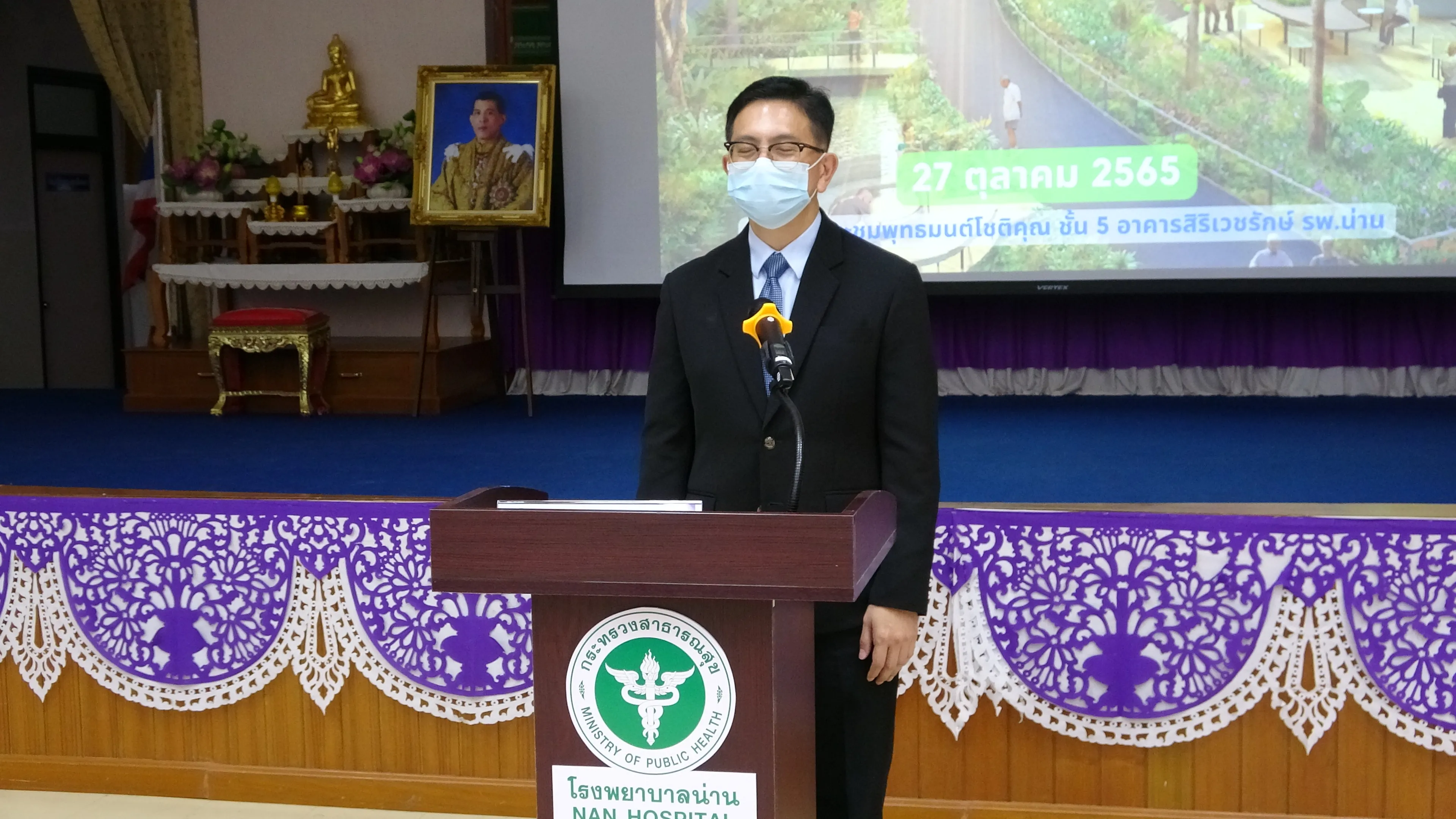ด้าน นายแพทย์ วสันต์ แก้ววี ผู้อำนวยการโรงพยาบาลน่าน กล่าวว่า กลุ่มด้านภารกิจปฐมภูมิและผู้รับผิดชอบได้จัดทำโครงการพัฒนาระบบสุขภาพเมืองที่เป็นมิตรกับผู้สูงอายุ ในพื้นที่นำร่องในเขตเทศบาลเมืองน่าน เพื่อรองรับสังคมผู้สูงอายุ ซึ่งปัจจุบันนี้ประเทศไทยเข้าสู่สังคมผู้สูงอายุแล้ว ในส่วนเทศบาลเมืองน่าน มีจำนวนผู้สูงอายุคิดเป็นร้อยละ 29.01 เข้าสู่สังคมผู้สูงอายุอย่างสมบูรณ์ จากคำกล่าวราย ท่านรองผู้อำนวยการโรงพยาบาลน่านด้านบริการปฐมภูมิ ในความสำคัญของโครงการดังกล่าว ที่จะเกิดโครงการฯที่ดี และขยายผลในพื้นที่อื่นๆ ต่อไป
