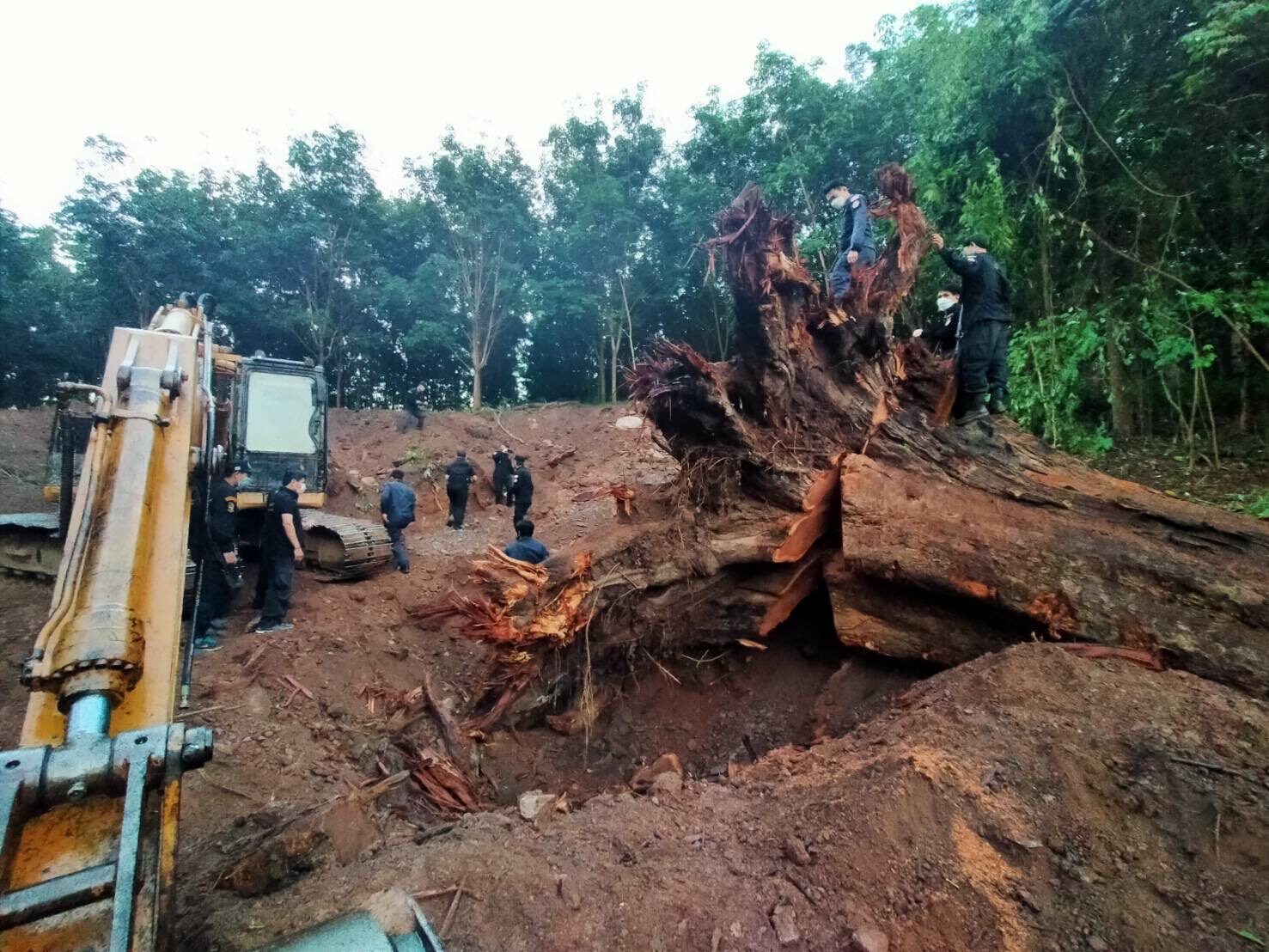 นายสุรชัย อจลบุญ อธิบดีกรมป่าไม้ กล่าวเพิ่มเติมว่า สำหรับดำเนินการตรวจยึดครั้งนี้ อยู่ในพื้นที่รวม 2 จุด โดยจุดที่ 1 พบรถแบคโฮ จำนวน 1 คัน อยู่ในที่เกิดเหตุใกล้กับต้นไม้มะค่าโมงมีร่องรอยทำการขุดรากถอนโคนต้นไม้และใช้เลื่อยยนต์ตัดทอนไม้ท่อน จำนวน 31 ท่อน ปริมาตร 29.86 ลบ.ม. และจุดที่ 2 ห่างกันประมาณ 100 เมตร พบรถแบคโฮ จำนวน 1 คัน อยู่ในที่เกิดเหตุในลำห้วยใกล้กับต้นไม้มะค่าโมงขนาดใหญ่ถูกตัดโค่นล้มและตัดทอนเป็นท่อน จำนวน 4 ท่อน ปริมาตร 1.79 ลบ.ม. รวมไม้มะค่าโมง 35 ท่อน ปริมาตร 55.18 ลูกบาศก์เมตร คิดเป็นค่าเสียหายของรัฐ 1,931,300 บาท