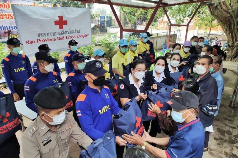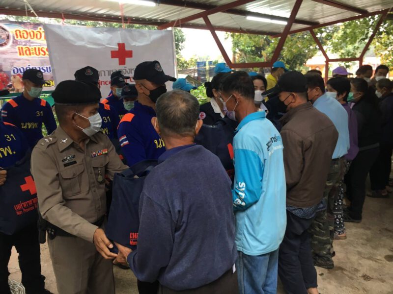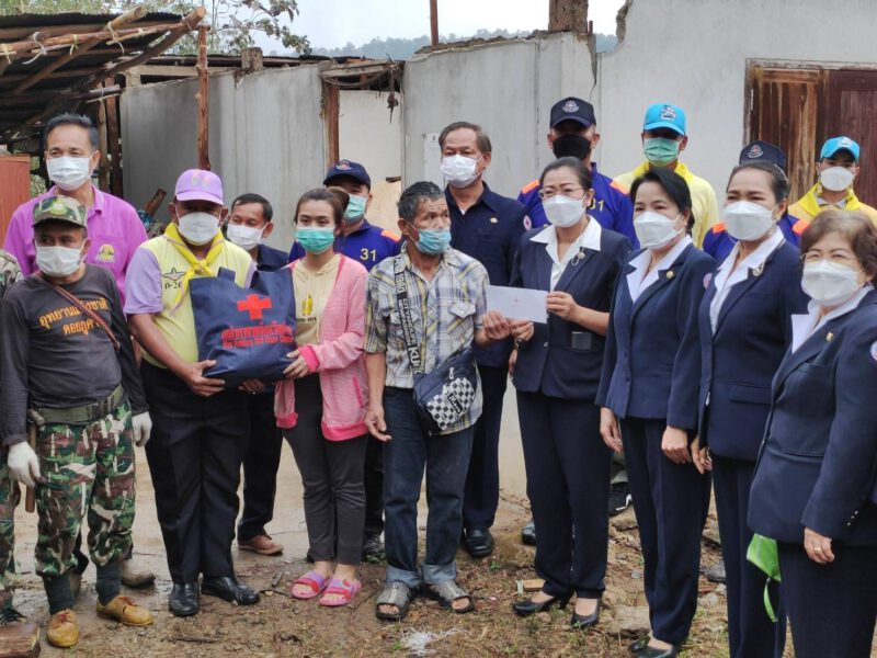 เมื่อวันที่ 21 มกราคม 2565 เวลา 10.30 น. นางสุดารัตน์ แววบัณฑิต นายกเหล่ากาชาดจังหวัดน่าน พร้อมด้วยรองนายเหล่ากาชาด นางสุภาสินี งามธุระ นางวาสิฎฐี ทวีสิงห์ และ กรรมการ สมาชิกเหล่ากาชาดจังหวัดน่าน ออกปฏิบัติงานด้านบรรเทาทุกข์ผู้ประสบภัย ร่วมกับกิ่งกาชาดอำเภอปัว นาง บุญธิสา สุธรรมแปง นายกกิ่วกาชาดอำเภอปัว โดยมีนายสมเกียรติ อาจสังข์ นายอำเภอปัว จิตอาสา กำลังพลทหารช่างจากหน่วยพัฒนาการเคลื่อนที่ 31 (นพค.31) และกำลังสนับสนุน จากอุทธยานแห่งชาติดอยภูคา พร้อมด้วยผู้นำท้องที่ ฝ่ายปกครอง ผู้นำท้องถิ่น องค์การบริหารส่วนตำบล.อวน สาธารณสุขอำเภอปัว เจ้าหน้าที่อุทธยานแห่งชาติดอยภูคา นำมอบถุงยังชีพ แก่ราษฎรในพื้นที่ ตำบลอวน อำเภอปัว จังหวัดน่าน จำนวน 26 ชุด ณ องค์การบริหารส่วนตำบลอวน อำเภอปัว และออกเยี่ยมและให้กำลังใจ บ้านเรือนของราษฎรที่ประสบภัย “วาตภัย” ที่ได้รับความเสียหายมากหลังคาเสียหายทั้งหลังในพื้นที่ 4 ราย โดยได้มอบเงินสงเคราะห์ช่วยเหลือครอบครัวละ 3,000 บาท และถุงยังชีพครอบครัวละ 1 ชุด